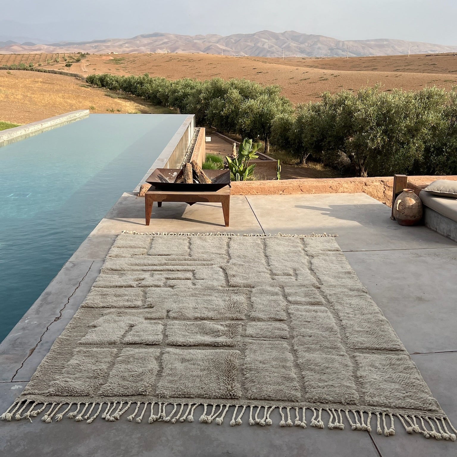 Vanuit een diepe waardering voor de Marokkaanse cultuur, tradities en het landschap, is een zorgvuldige geselecteerde collectie van handgeweven tapijten en keramieken objecten ontstaan. Puur in vorm en eerlijk in oorsprong. Altijd met een focus op natuurlijke en duurzame materialen. Geen trends, maar stukken die écht waarde toevoegen en balans creëren in je interieur. Warm en puur, in een tijdloos design.