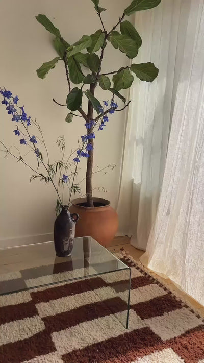 Vernoemd naar de Beni Ouarain stam en het gelijknamige dorp waar deze iconische stijl zijn oorsprong vindt,. Met de hand geweven in Boujad in het Midden Atlas Gebergte. Gemaakt van 100% onbehandeld schapenwol, gekenmerkt door subtiele motieven en natuurlijke tinten. Dit tijdloze, hoogpolige tapijt met fluffy textuur ligt heerlijk zacht onder je voeten. De Beni Ouarain brengt rust en balans in je interieur - en vult de ruimte aan zonder haar te overheersen. Minimalistisch maar warm.